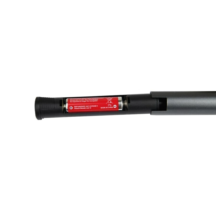 alimentação) e P10 com slot para pilha AA, tem fio com 5 metros de comprimento.
