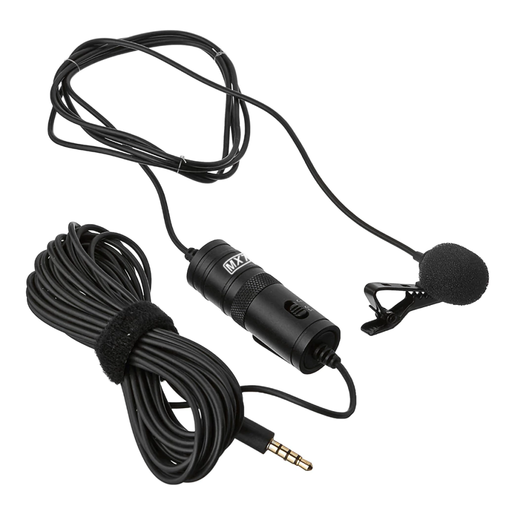 Microfone para Samrtphones, tablets, computadores e câmeras DSLR, de lapela com fio de 6 metros de comprimento MXT-M1, com plugue P2 na ponta.
