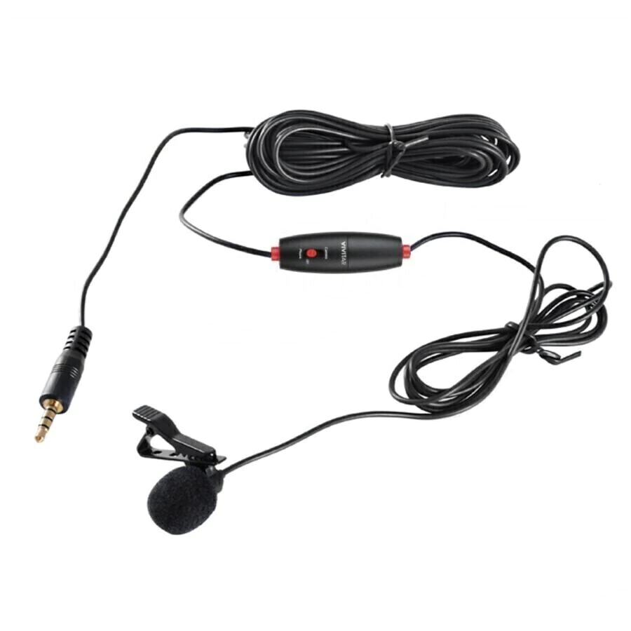 Microfone para cameras DSLR, notebook smartphones, de lapela com fio de 6 metros de comprimento Vivitar VIVMIC703L, com plugue P2 na ponta. Pode ser usado em smartphones, produto de qualidade com baixo ruido no manuseio e condensador omnidirecional que melhora o seu desempenho, funciona com uma bateria LR-44