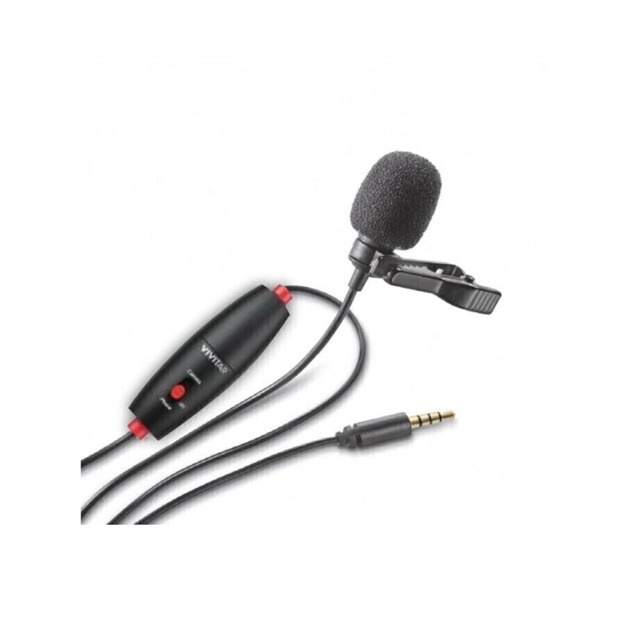 01 Microfone stereo de lapela com fio de 6 metros - Vivitar VIVMIC703L