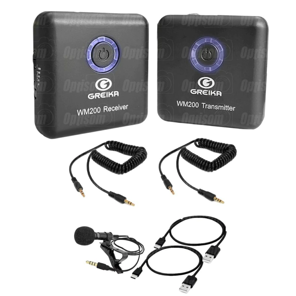 O microfone Sem fio WM200 Ultra-compact da Greika é um sistema de microfonia da nova geração 2.4GHz Wireless em dual-channel, que captura seu áudio de uma forma mais precisa para smartphone, tablets, câmeras DSLR, camcorders, PC e entre outros dispositivos com conector 3,5mm.
