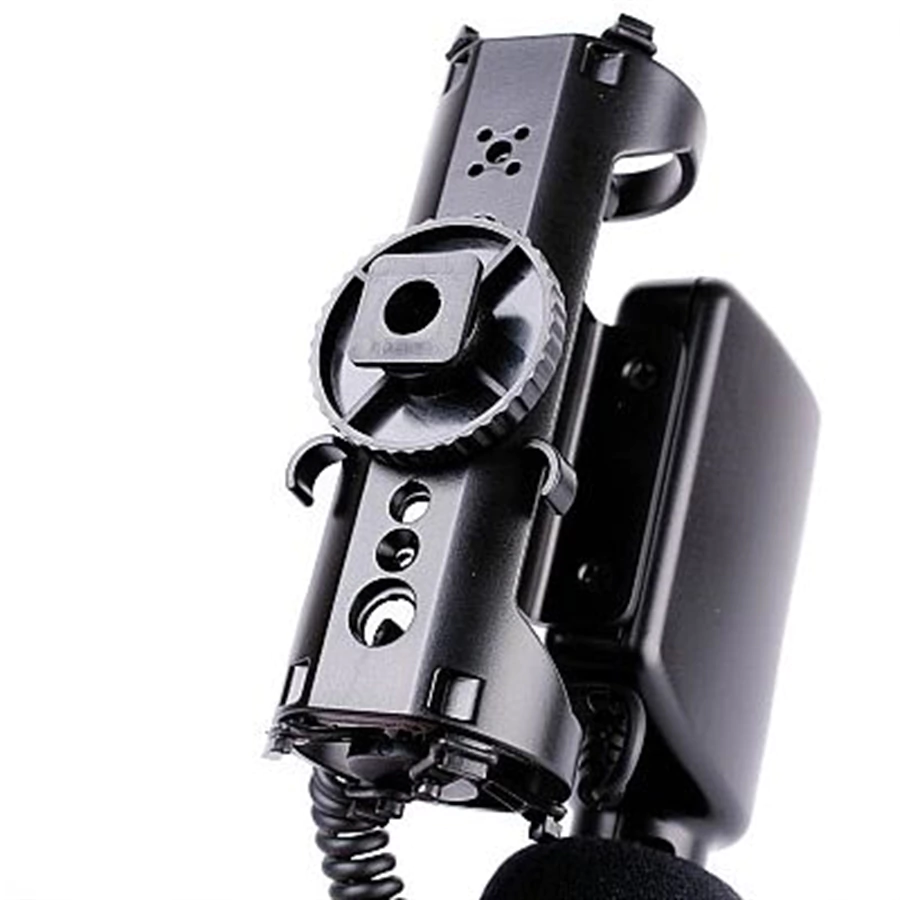 Este microfone pode ser conectado diretamente na sapata da câmera ou em outro dispositivo similar. O cabo espiral para conectar na câmera a oferece margem suficiente de cerca de 28 centímetros de comprimento com conector padrão para todas as cameras com entrada para microfone.