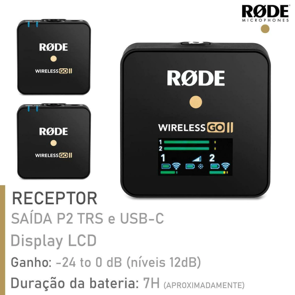 MICROFONE RODE DUPLO SEM FIO LAPELA WIRELESS GO II COMPLETO