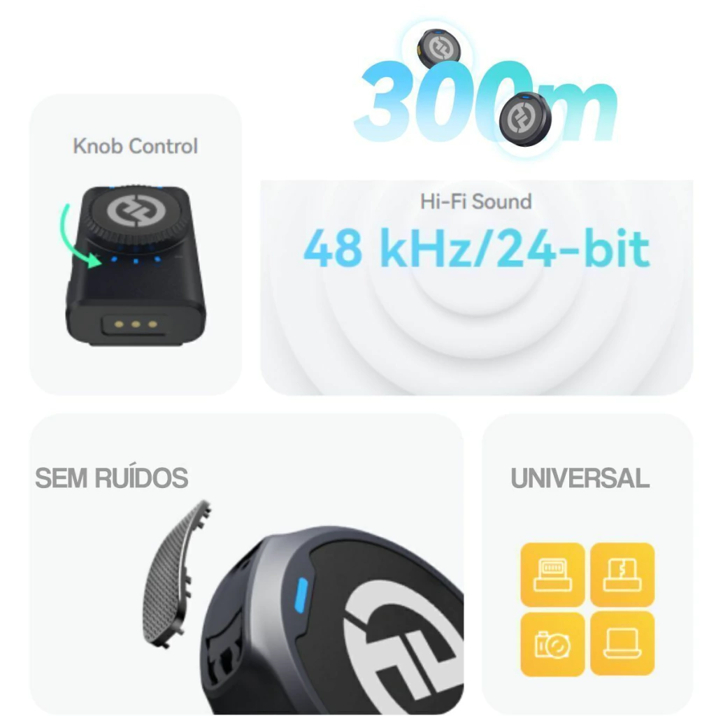 Transmissores Incluídos: 2x Clip-On com Microfone
