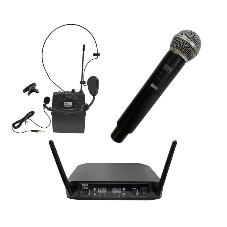 Modelo 3 em 1, você pode usar tanto como headset quanto lapela, além de um microfone de mão incluso.