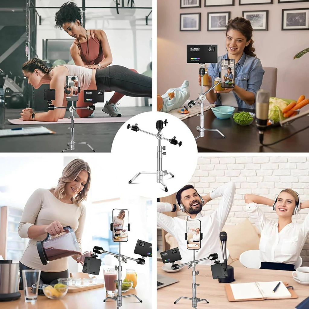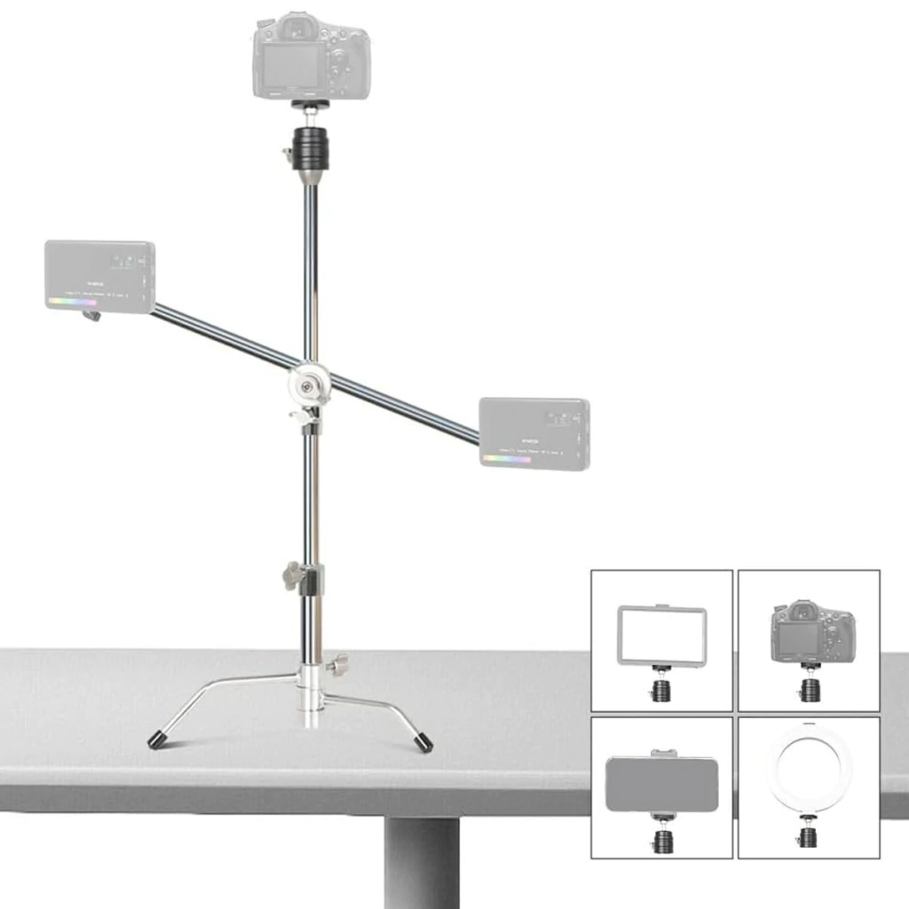 O Mini Tripé C Stand em Inox com 3 Cabeças Ball Head é um equipamento versátil e robusto, projetado para atender às necessidades dos profissionais e entusiastas da fotografia e do vídeo.