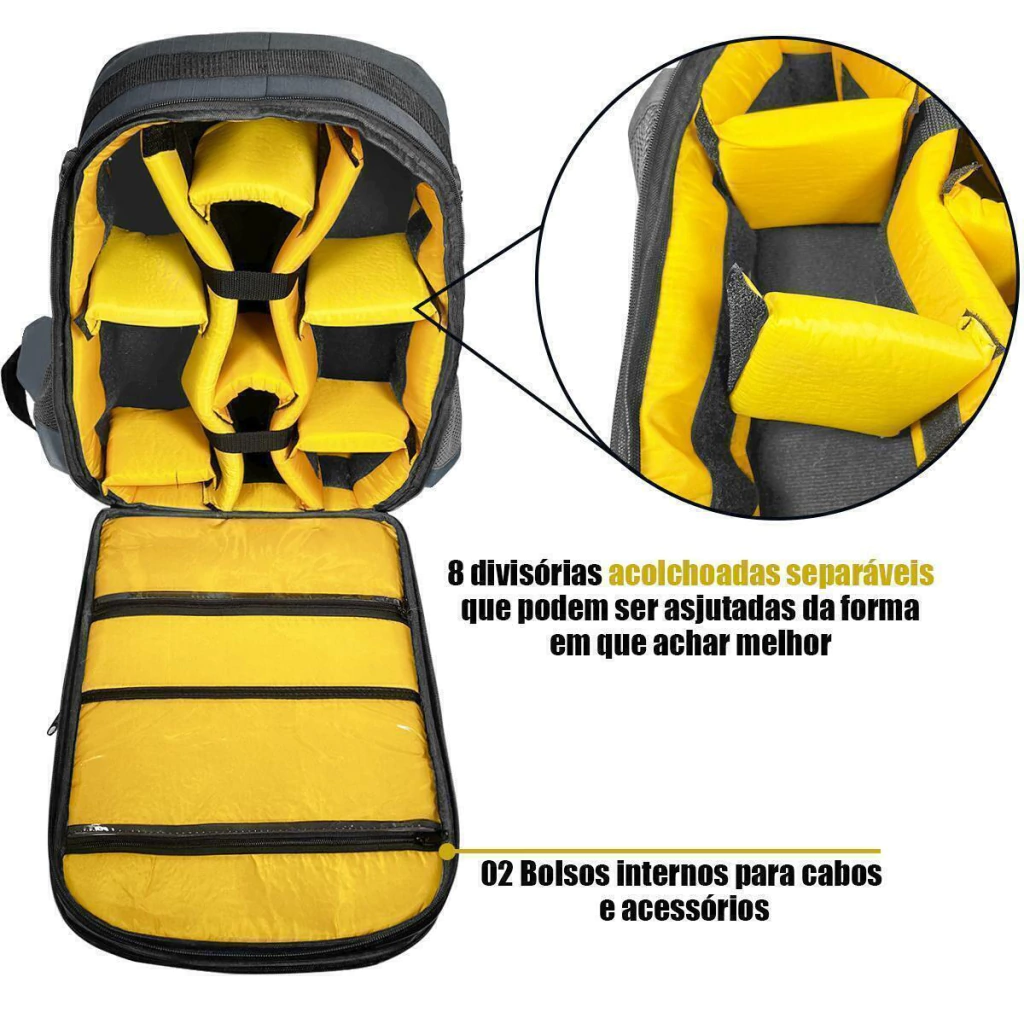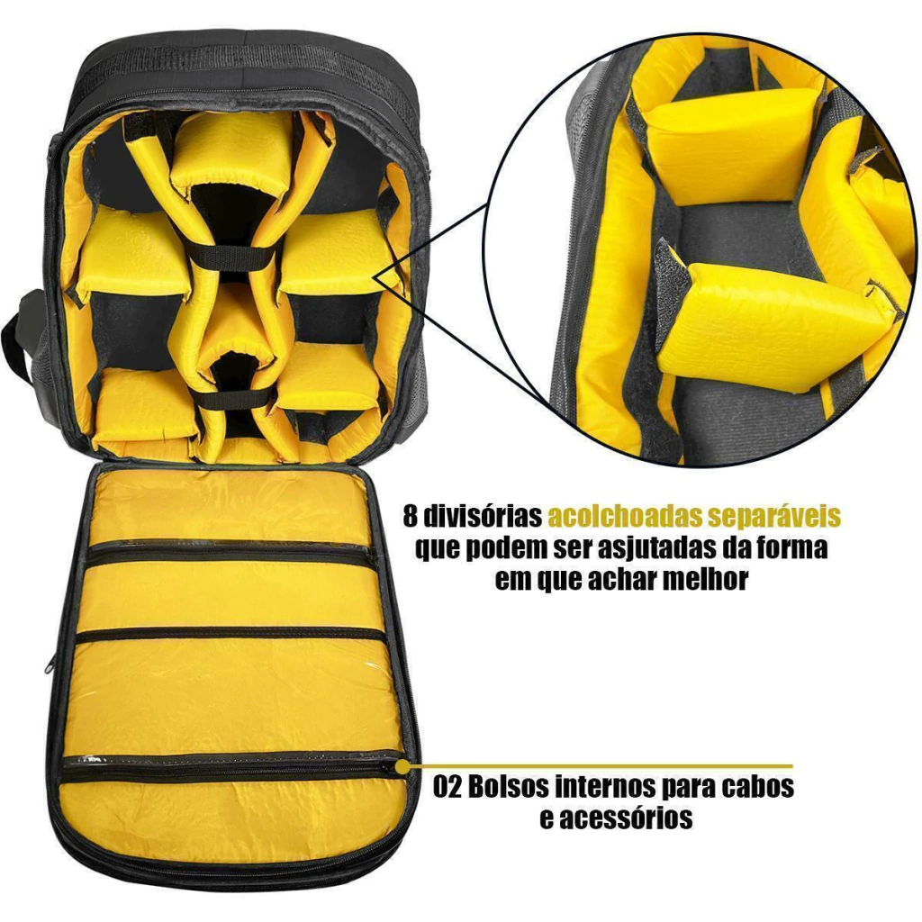 Confeccionada em nylon na parte externa e espuma pack EVA para proteger os seus equipamentos de pequenos de impactos e também conta com pluma para não riscar o seu equipamento.