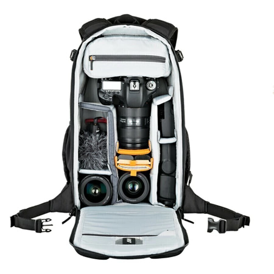 O sistema de armazenamento dinâmico de alta capacidade se ajusta para acomodar uma ampla variedade de equipamentos, incluindo uma DSLR com lente montada de 70-200mm ou 2 lentes padrão adicionais ou drone compacto, além de tripé compacto e tablet de 10 "