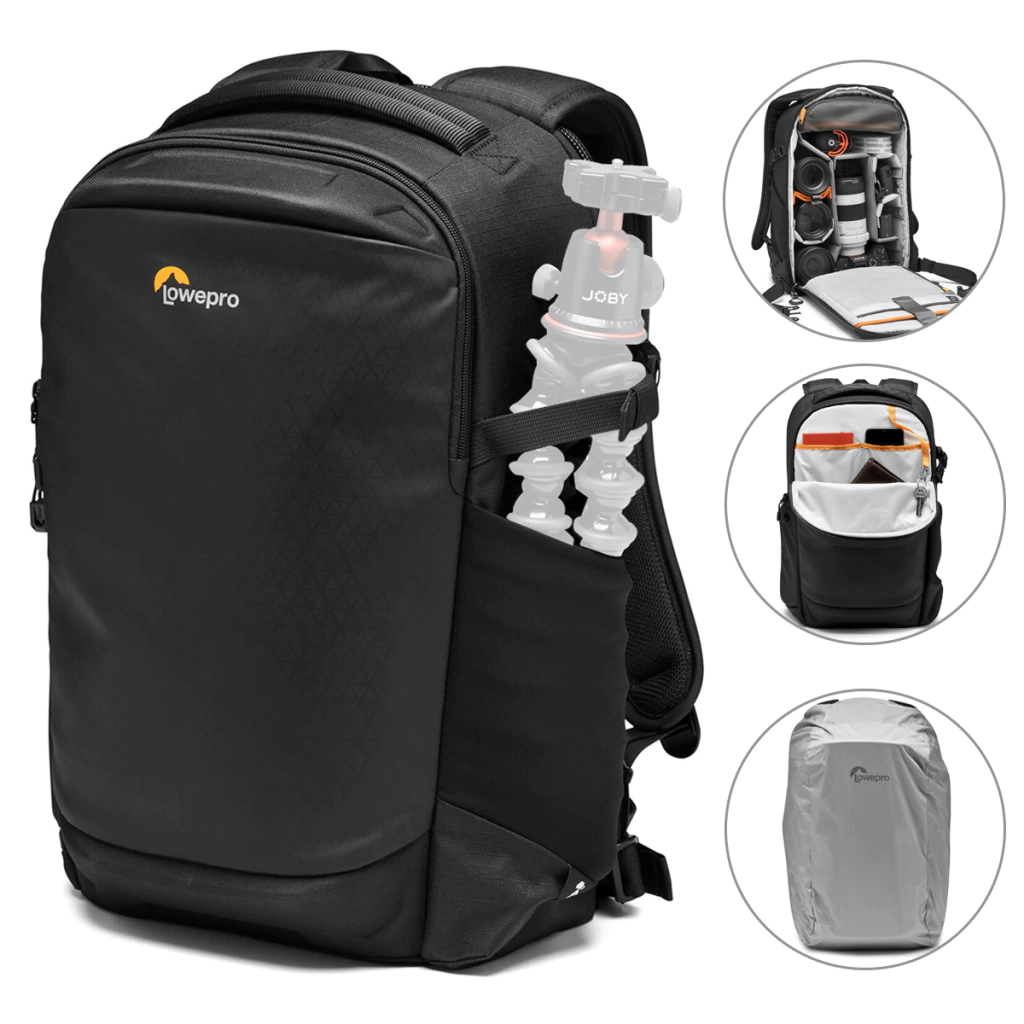 No interior, um novo layout divisor oferece oportunidade aprimorada para armazenamento versátil para conjuntos de kits mistos e sem espelho e itens não fotográficos, juntamente com tripé de viagem, Tablet de 10 ", laptop de 13" e muito mais.