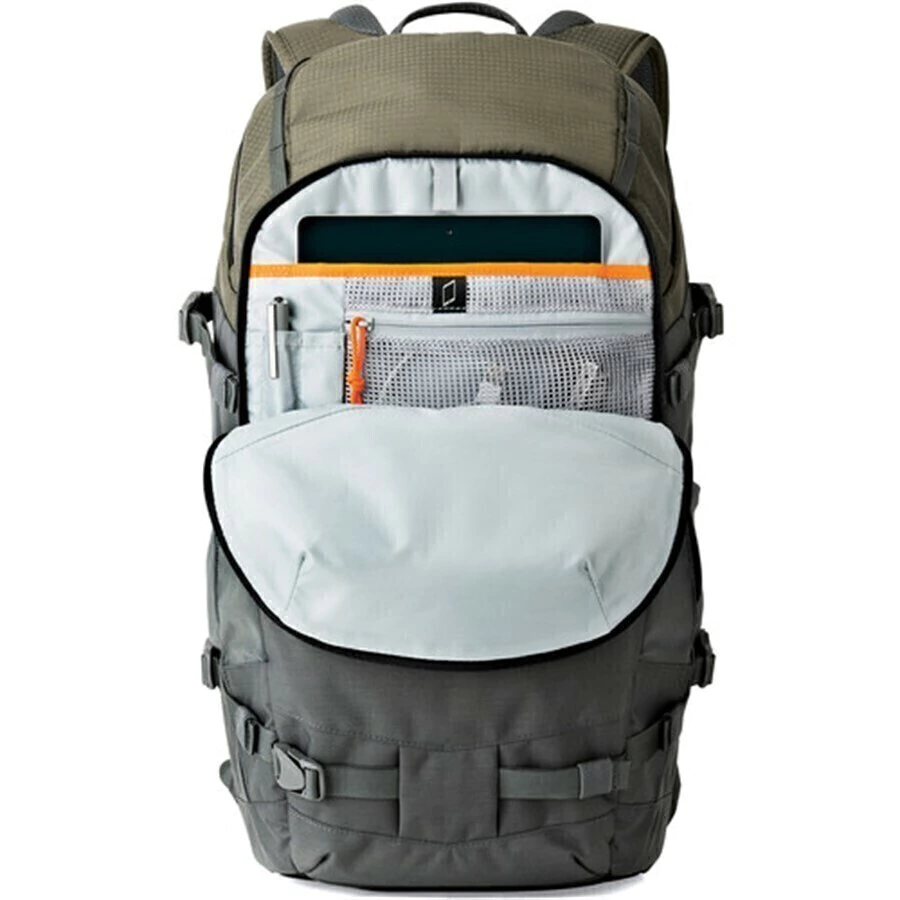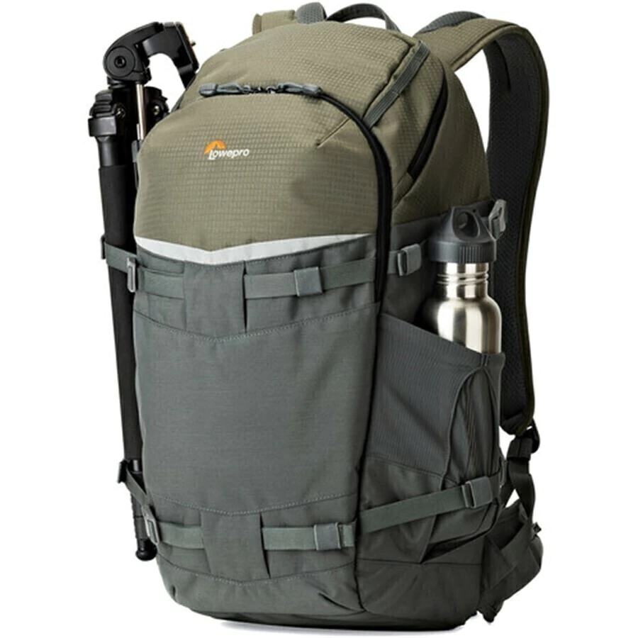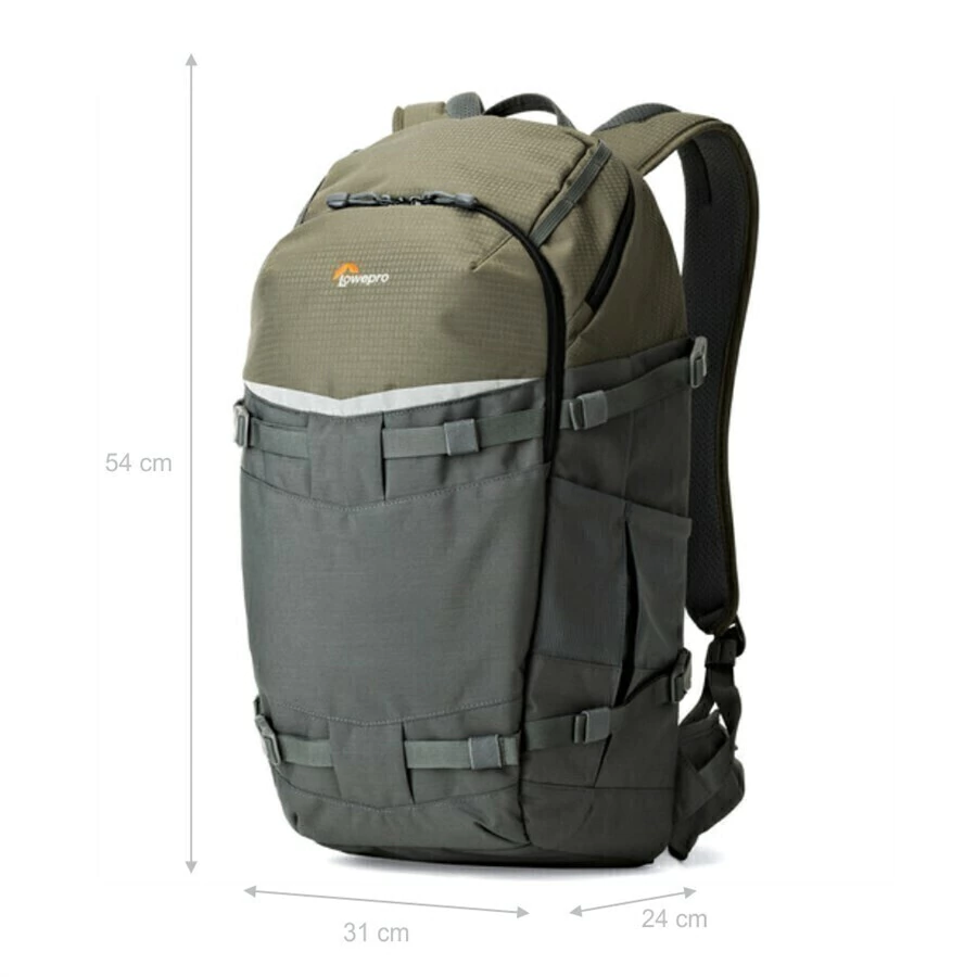 Projetado para armazenar e proteger o seu equipamento de fotografia, tablet e itens pessoais, a Flipside Trek BP 450 AW mochila da Lowepro possui compartimentos que acomodam um corpo de câmera DSLR profissional, 3-4 lentes e acessórios adicionais em um compartimento inferior que pode ser facilmente recuperado através de um ponto de acesso do lado do corpo enquanto a bolsa está sendo transportada.