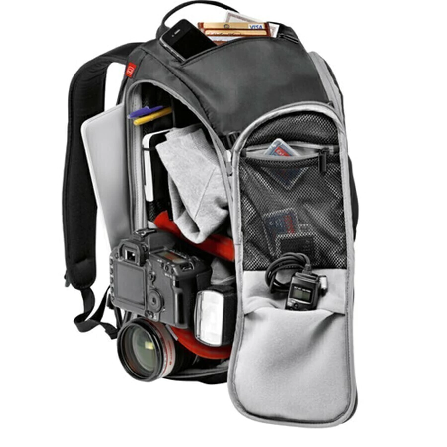 A mochila Advanced Travel Backpack MBMABPTRV preta da Manfrotto acomoda uma DSLR com uma lente acoplada, duas lentes adicionais, um flash e acessórios entre divisórias. Um bolso traseiro dedicado suporta até um laptop de 13 "e um bolso lateral expansível fechado suporta um tripé compacto Manfrotto Befree. Para acessórios, há uma área de armazenamento superior espaçosa e vários bolsos de armazenamento externos e internos. Destaques do produto: Serve para DSLR, 3 lentes, flash e acessórios Bolso Traseiro Dedicado para Laptop de 13 " Bolso Expansível para Tripé Befree Compartimento de arrumação superior espaçoso Bolsos externos e acessórios interiores Divisor de Compartimento Principal Removível Painel de Acesso Lateral Rápido Acessório de Tripé Frontal Arnês de mochila acolchoada Punho de aperto superior Dimensões exteriores 30 cm x 48 cm x 18 cm Nylon Material Exterior Tipo de Fecho Zíper Capa de chuva de resistência a água Itens Inclusos: 01 Mochila MBMABPTRV da Manfrotto – Preta 01 Capa de Chuva Peso: 840g Garantia: 06 meses