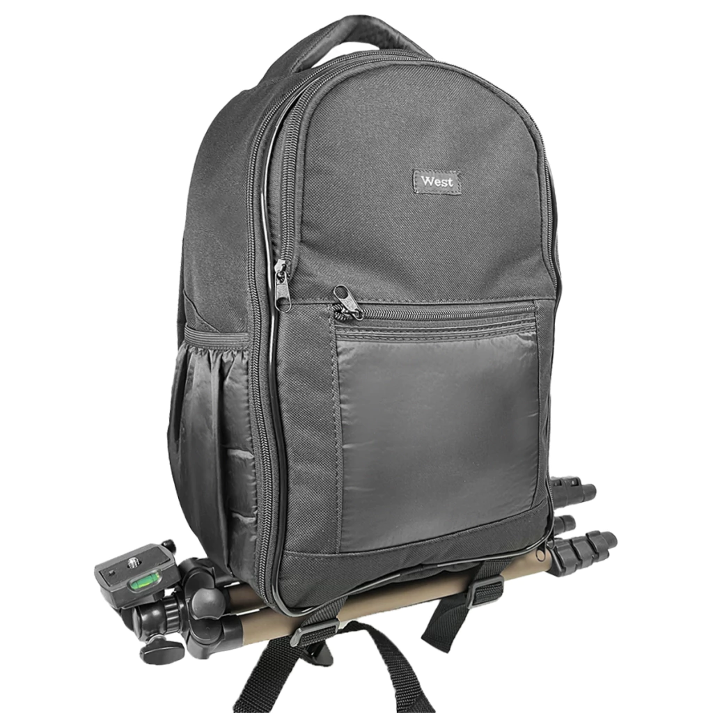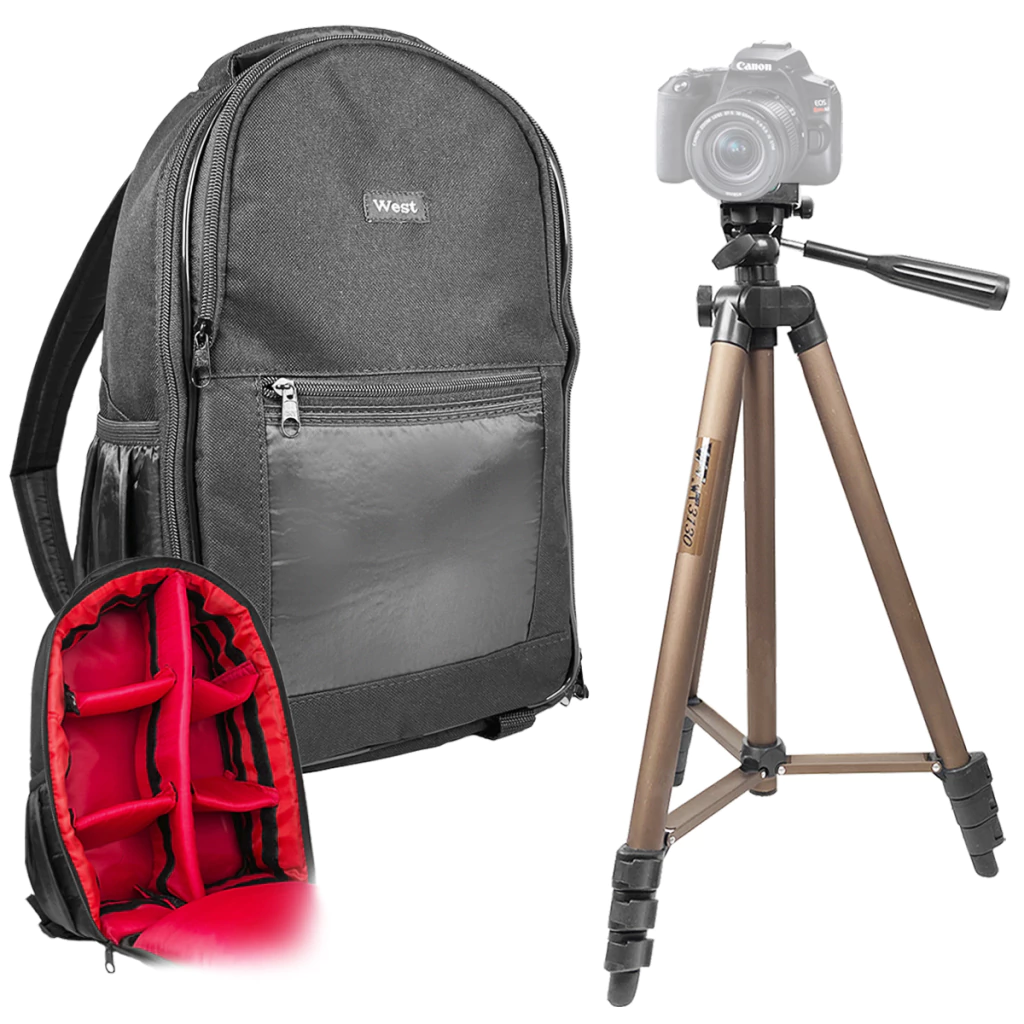 Combo Mochila Fotográfica Preta West Jamily Para Câmera DSLR, Objetivas e acessórios + Tripé WT3130 da Greika de 1,25 metro
