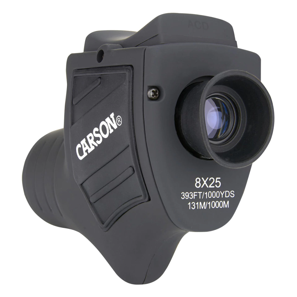 Ao contrário de muitos monóculos que requerem duas mãos para ajustar o foco, o Carson 8x25 Bandit pode ser totalmente operado com apenas uma mão, basta pressionar a parte frontal ou traseira da barra oscilante na parte superior.