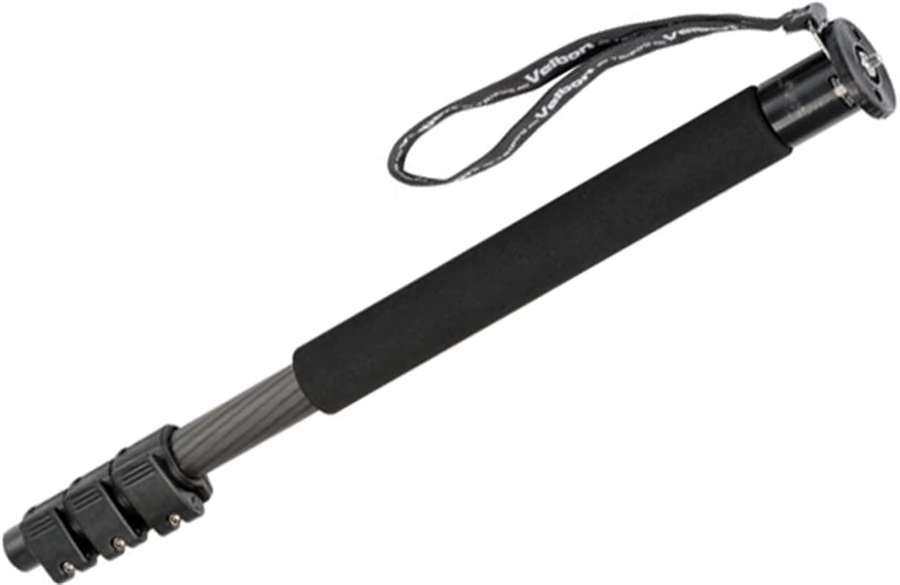 Em algumas situações menos é realmente mais, o Monopé Velbon GEO POD E54 com penas de 4 Seções de fibra de carbono é um leve e pratico monopé para você obter mais velocidade na criação de fotos, mais espaço disponíveis para lentes, acessórios, etc. e mais flexibilidade no local de implantação das imagens Este apoio 4-secção é feita de um compósito de fibra de carbono / basalto para maior resistência e rigidez. As fechaduras e alavanca positivos desbloqueia as secções muito rapidamente, e todo o monopé pesa apenas 371 g.