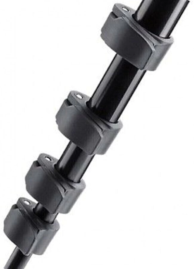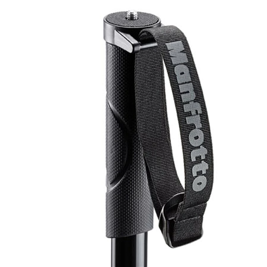 O monopé de alumínio Manfrotto Compact preto é um suporte leve para câmeras, pesando apenas 330 g ele é ideal para viagens. Ele estende-se de 40 cm até 146 cm suportando até 1,5 kg. Monopé com 5 seções e travas da perna é de click tipo "flip".