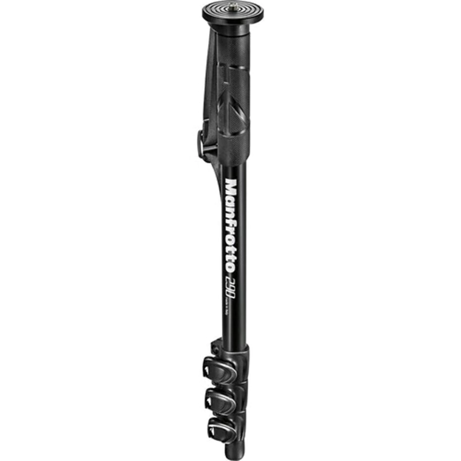 O Monopé de Alumínio Manfrotto 290 possui uma altura maxima de 151cm e dobrado de 49cm , pode suportar até 5Kg e pesa apenas 700g. As travas Flip permitem que você ajuste as quatro seções, e reversível 1/4 "-20 e 3/8" -16 mount permite conectar uma cabeça opcional ou uma câmera diretamente ao monopé. Um aperto de borracha e uma pulseira proporcionam conforto e segurança.