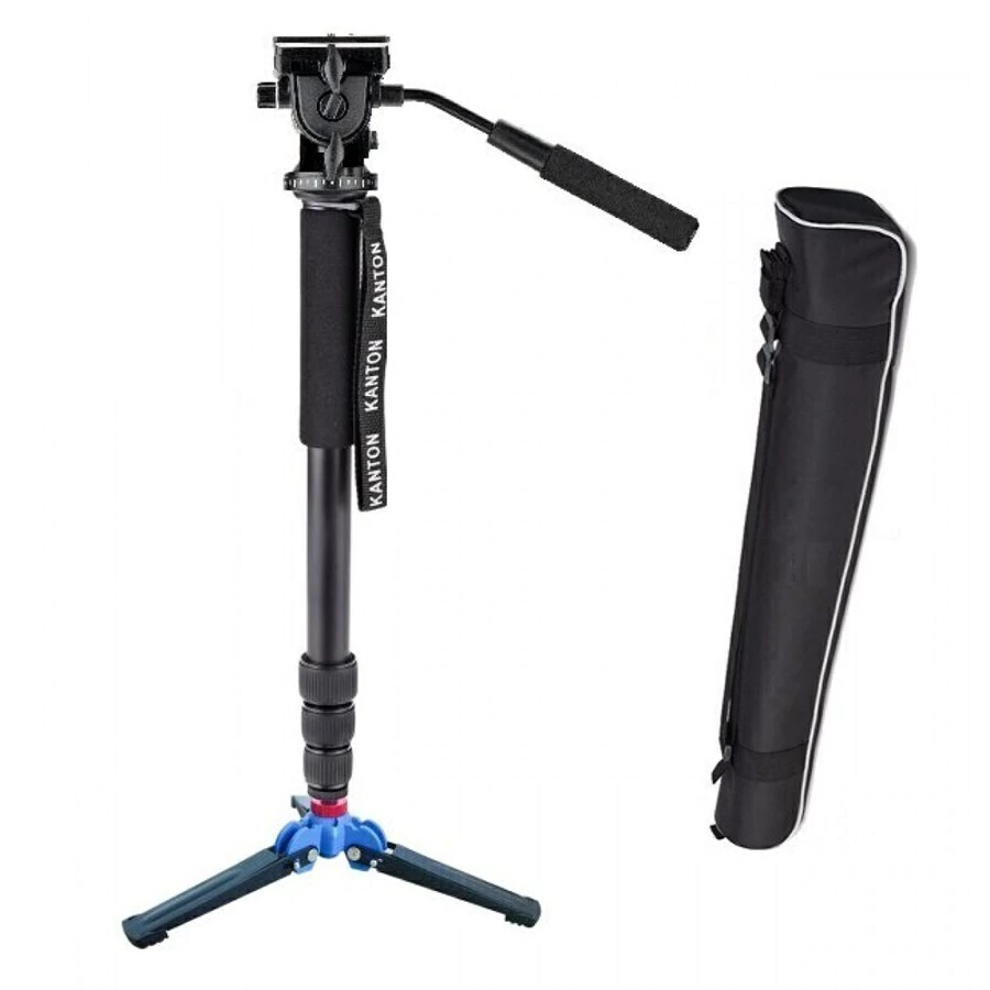 Monope Pe de Galinha Nest KT 3050 com Cabeça Semi Hidraulica em aluminio, cor preto, possui 5 secções. saque rapido, parafuso 1/4 universal, compatibilidade com cameras DSLR/Filmadoras, com capacidade de carga para surportar 3 Kilos.