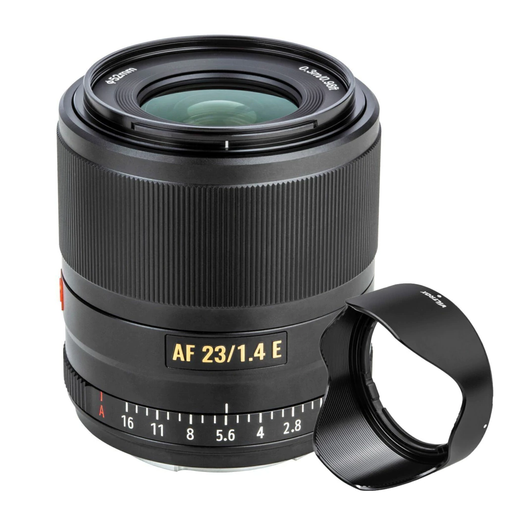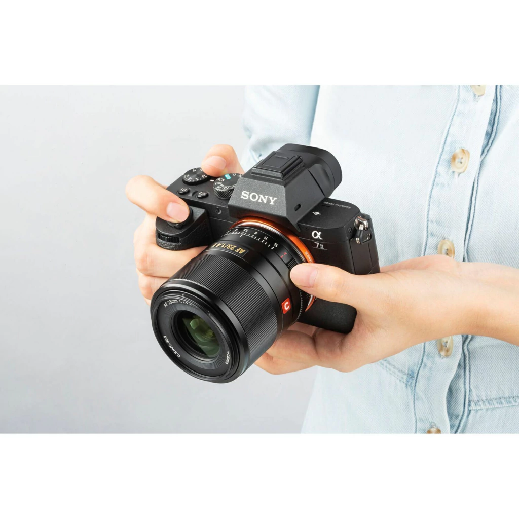 Caracterizada por seu design elegante e versátil, a Viltrox AF 23mm f/1.4 E é uma lente prime grande angular projetada para câmeras mirrorless Sony E-mount no formato APS-C.