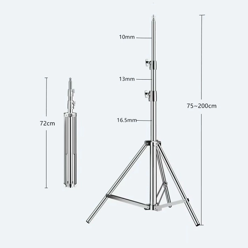 Acompanha um tripé Inox Greika GLF-X2 suportando até 3kg e com uma altura máxima de 2 metros.