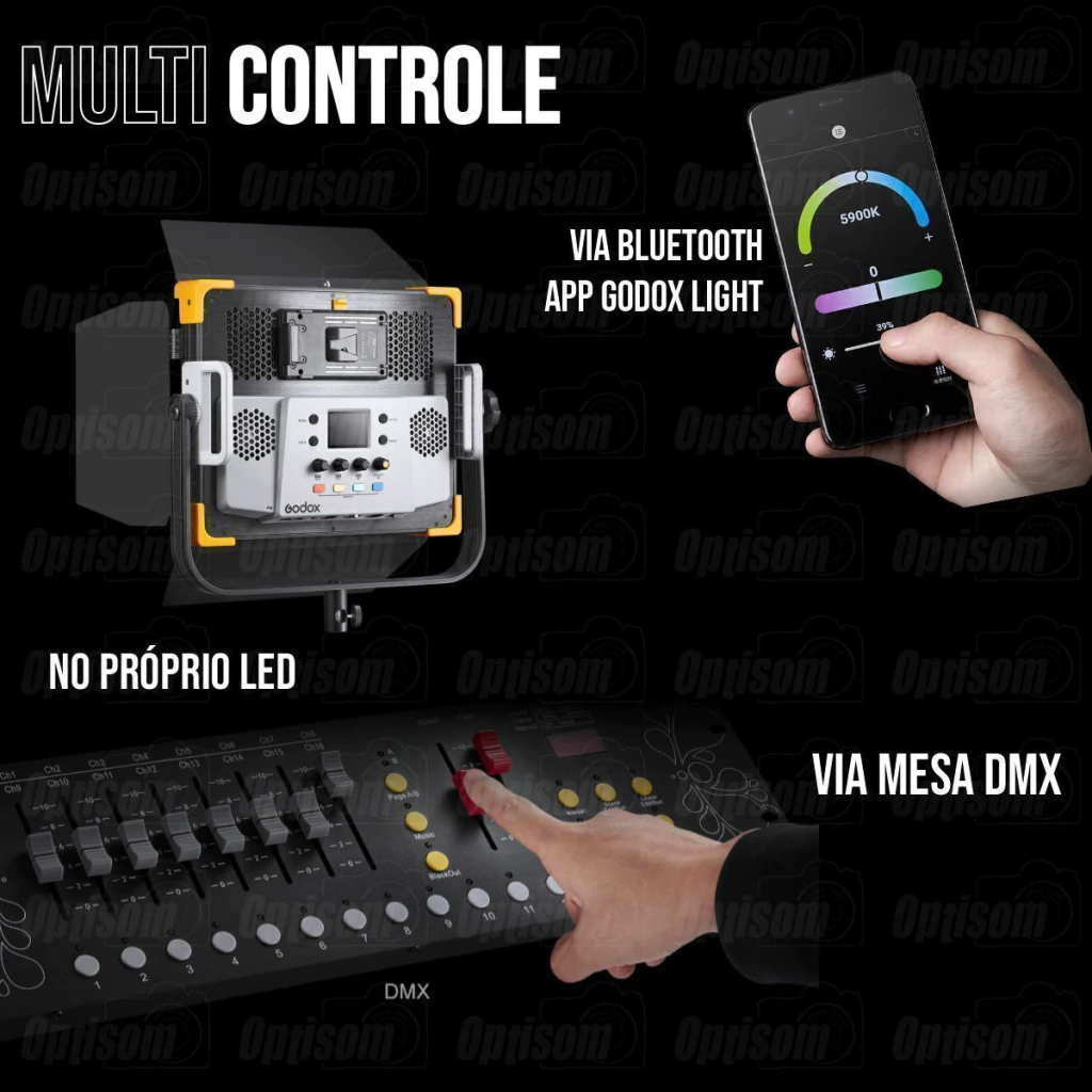 Controle: DMX, BLUETOOTH E DIRETO NO PAINEL DO LED