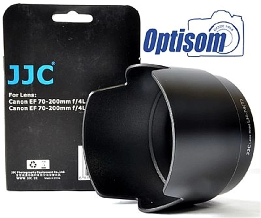 Parasol para lente Canon 70-200mm f4, encaixe tipo baioneta, material plastico e parasol tipo tulipa, produto não original de qualidade,marca JJC.