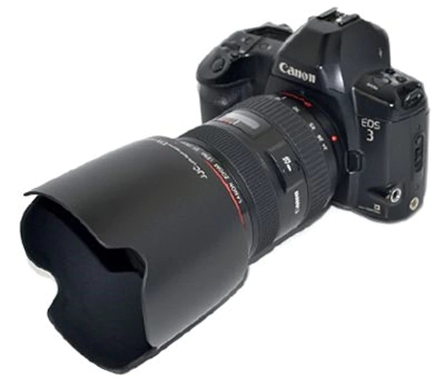 Parasol para lente Canon 24-70mm f2.8, encaixe tipo baioneta, material plastico e parasol tipo tulipa, produto de altíssima qualidade.