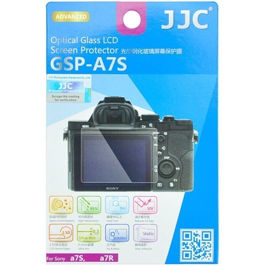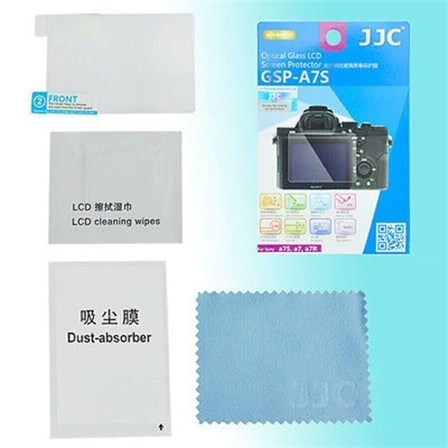 A película de vidro GSP-A7S da JJC é uma folha de 0,3 mm de vidro óptico ultra-fino usado para proteger o monitor LCD da sua câmera. Tem alta fração de luz até 95% para mostrar a imagem clara da tela LCD. A dureza da sua superfície é até 9H. Várias camadas de material protetor proteger o seu monitor de sujeira, arranhões, suor, manchas e impacto leve. O vidro à prova de quebras bloqueia os raios UV enquanto permite a luz visível dentro. A superfície do protetor também é contra água, óleo e impressões digitais. O protetor de vidro é fácil de instalar e simples de remover. Seu método de adesão estática não deixa nenhum resíduo pegajoso atrás de sua tela. As ferramentas de limpeza gratuitas fornecidas na embalagem, são utilizadas para limpar a tela antes da instalação ou após a remoção do protetor.
