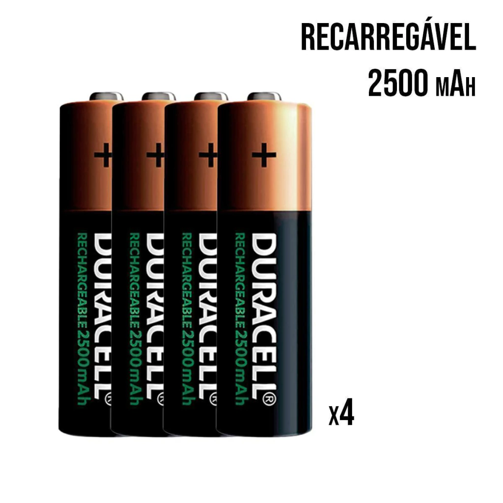As pilhas recarregáveis Duracell® estão disponíveis nos tamanhos AAA e AA, podem ser recarregadas centenas de vezes e têm duração de até 10 anos. Além de serem pré-carregadas, o que permite o uso imediato, elas permanecem carregadas por até 12 meses* quando não estão em uso.