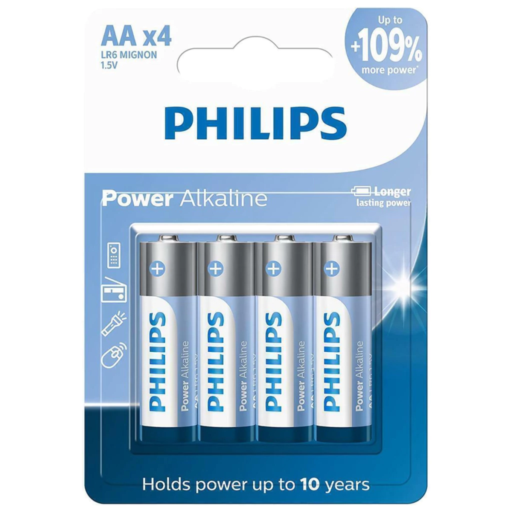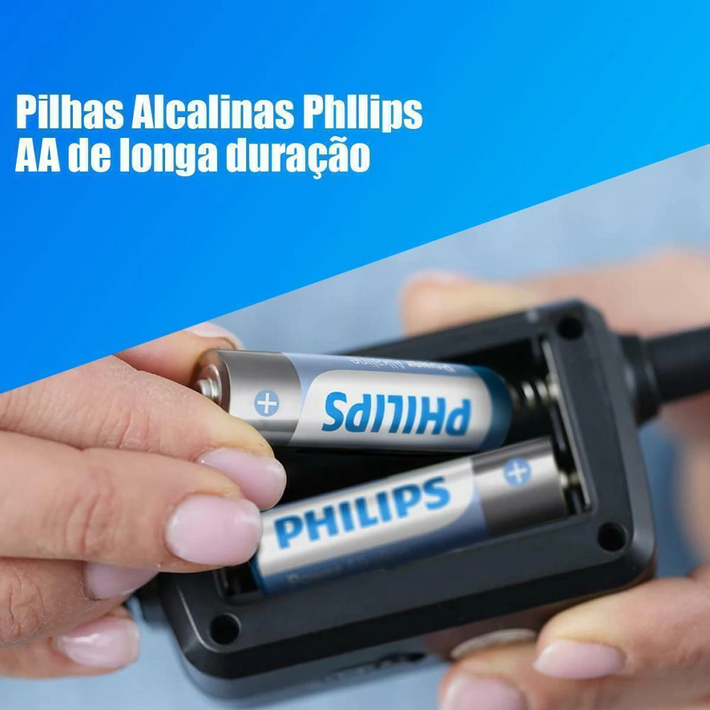 01 kit com 4 pilhas AA "Power Life" alcalinas Philips"