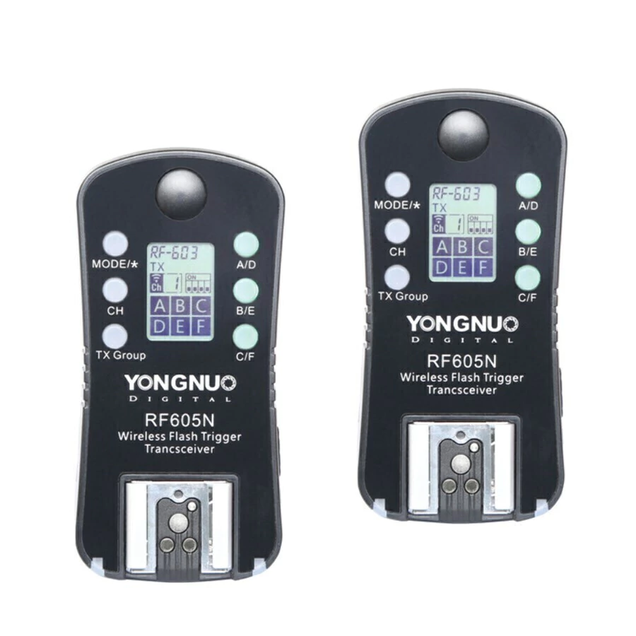 Kit de Rádio flash RF-605N sem fio Transceptor YONGNUO para Nikon possui dois transceptores de 16 canais, de 2,4 GHz, e dois cabos disparador para acionamento remoto de câmeras Nikon. Cada transceptor tem uma sapata macho, e uma sapata fêmea em cima para o desencadeamento de uma câmera ou um flash de unidade, podendo alcançar 328' sem fio e velocidades de sincronização pequena quanto 1/320 segundo. Além disso, cada um tem um disparador de dupla função para acordar e disparar o seu dispositivo. Feito para disparar flash ou obturador de câmeras (via cabo, não incluso). Os transceptores podem ser colocados em modos de transmissão única ou receptor dependendo de suas necessidades e pode sincronizar as unidades de flash e câmeras. Cada um tem duas portas de sincronização 2.5mm e do PC para o uso de câmeras ou flashes adicionais. Cada transceptor é alimentado por 2 pilhas AAA comprados separadamente. • 16 canais • 6 grupos (compatível com YN560-TX) • Alcance: 328 '(100 m) • Câmera sem fio possíveis desencadeantes • tela LCD exibe as teclas de atalho • YONGNUO TX / RX / TRX compatível. Esses aparelhos pode tanto ser receptor como transmissor. Ao encaixar na sapata da câmera, você pode colocar o flash em cima do rádio flash, logo o mesmo vai fazer o TTL do flash funcionar e disparar outro flash fora da câmera (sem TTL).f Itens Inclusos: 02 RF-605 para Nikon; 02 Cabos para disparar câmeras Nikon.