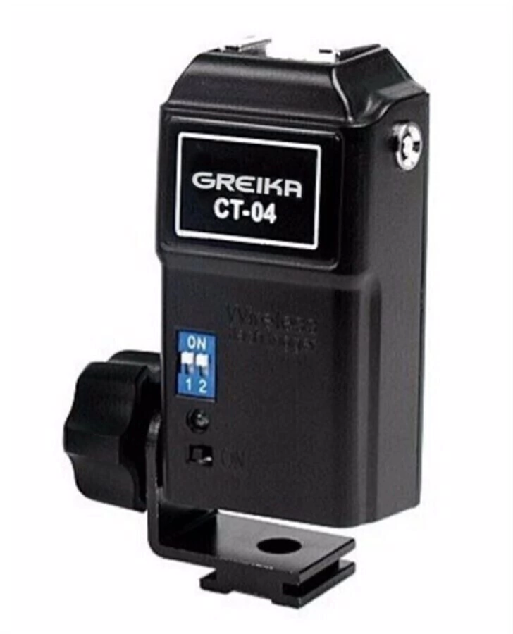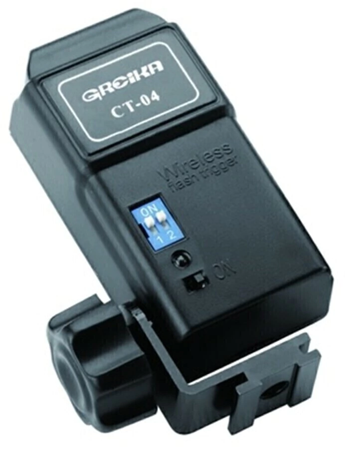 Receptor wireless de 4 canais CT-04 Greika. Utilizado para disparar flashes remotamente através de um sinal de rádio.