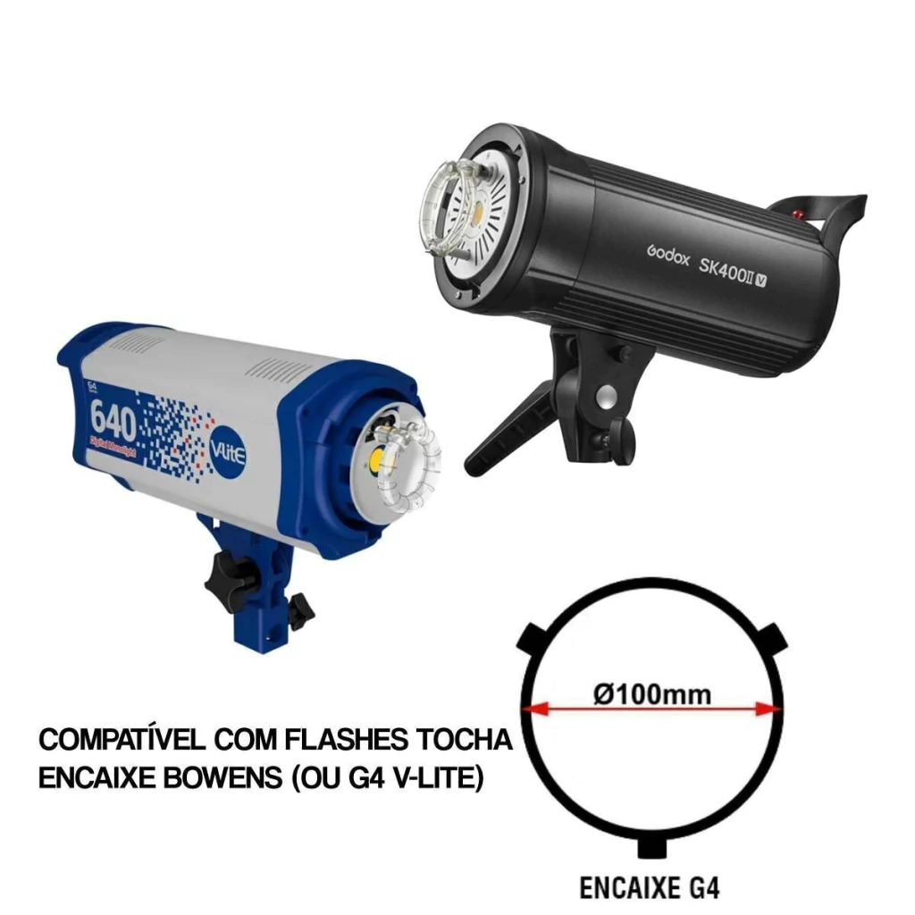 encaixe de Acessórios 135mm em flashes Bowens (G4 V-LITE).