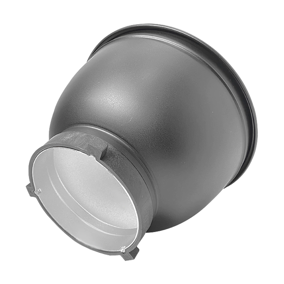 O Refletor conta com encaixe do tipo padrão bowens para ser usado em flashes, tochas de estúdios fotográficos.