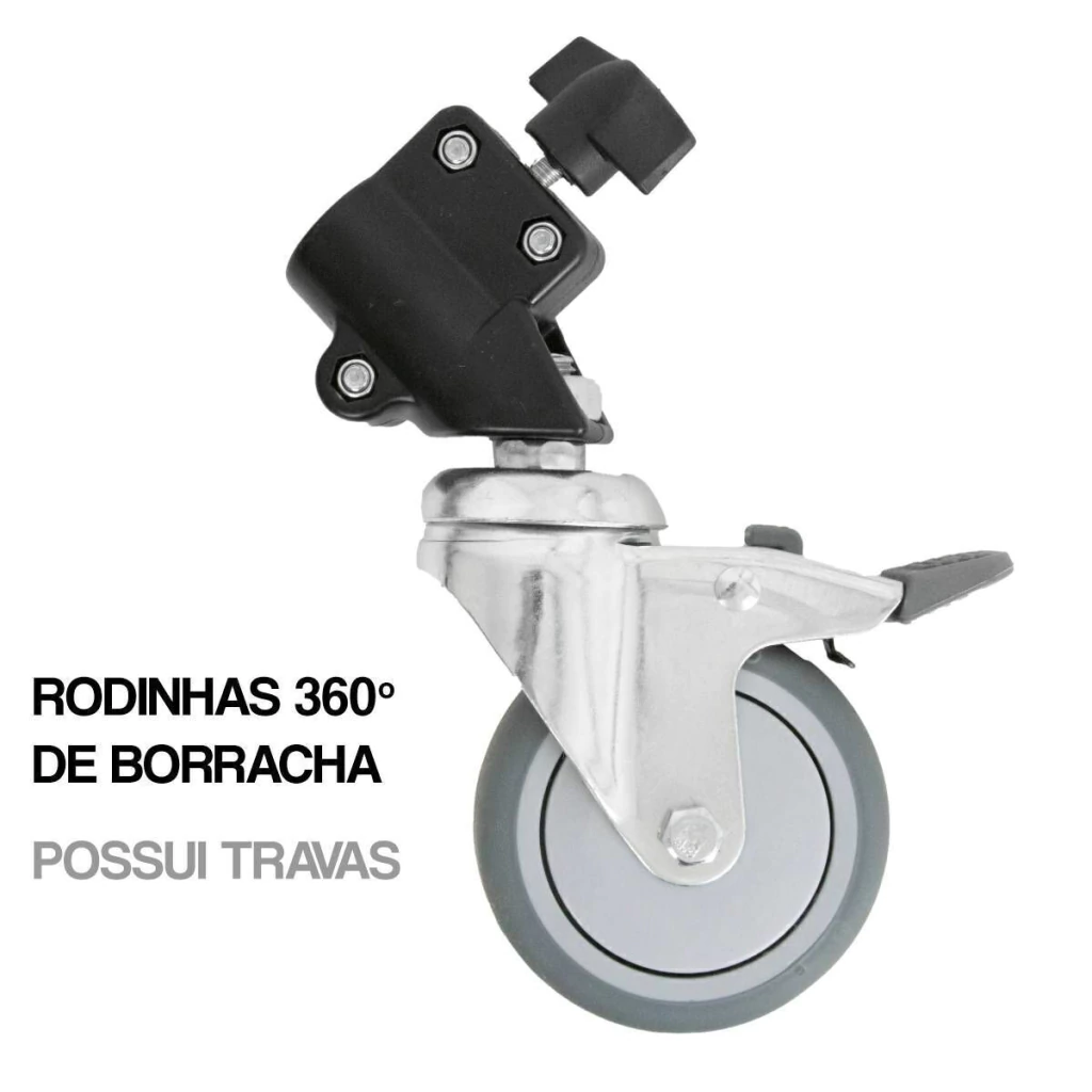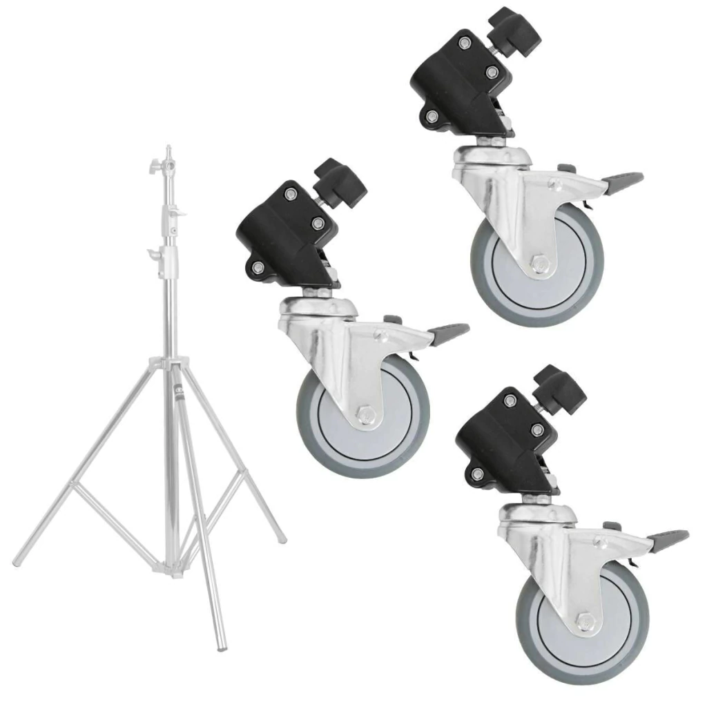 Conjunto 3 Rodinhas emborrachadas Greika para tripés de iluminação profissional.