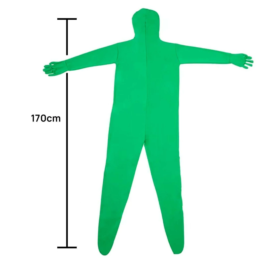 Projetada tanto para uso profissional quanto amador, esta roupa chroma key de 170cm verde é confeccionada em Milk Silk, um tecido leve, elástico e confortável, que se ajusta perfeitamente ao corpo.