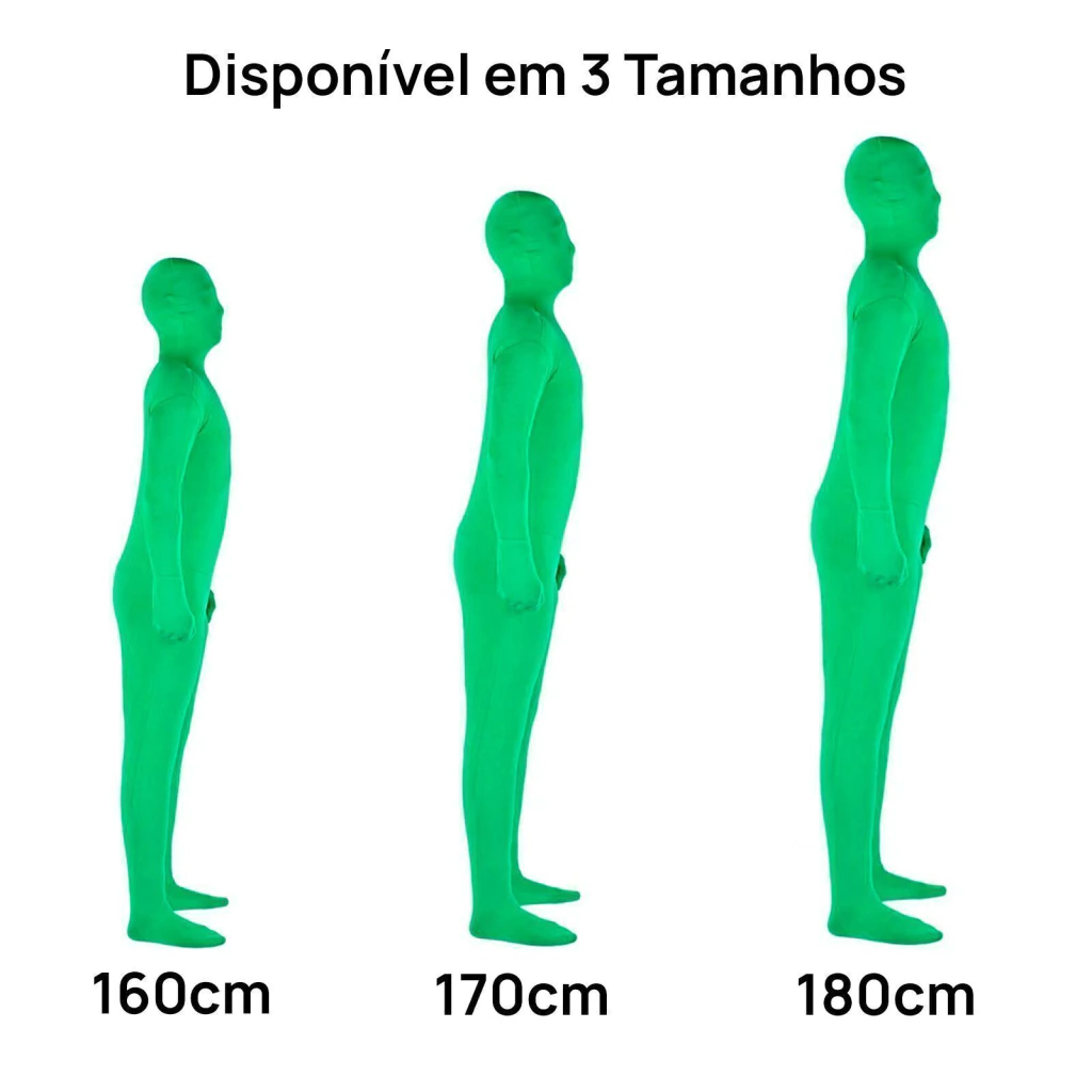Com um zíper discreto nas costas e design completo (macacão inteiro), ela garante cobertura total para resultados eficientes em qualquer tipo de gravação com fundo verde.