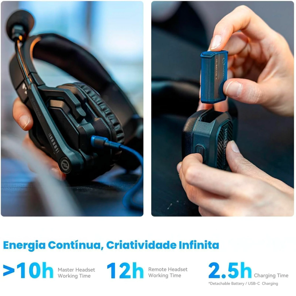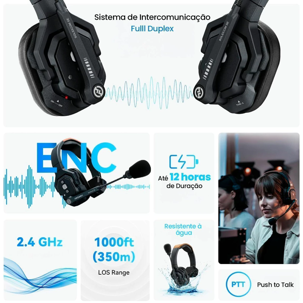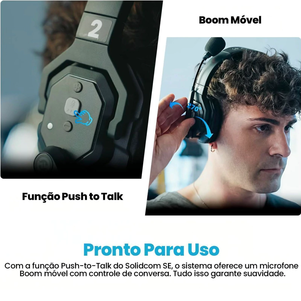 Sistema de intercomunicação Hollyland Solidcom SE Global 2S full-duplex com cancelamento de ruído para 2 pessoas (2,4 GHz)