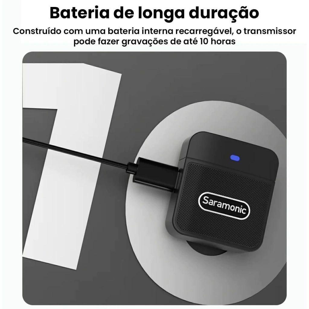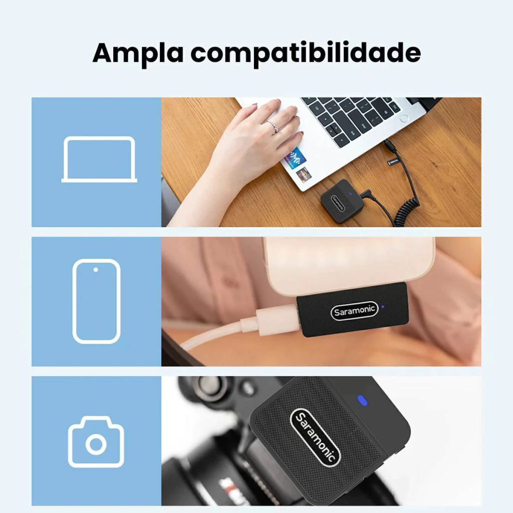 01 Saramonic Blink 100 B6 Sistema de microfone clip-on digital compacto sem fio com conector USB-C (2,4 GHz)