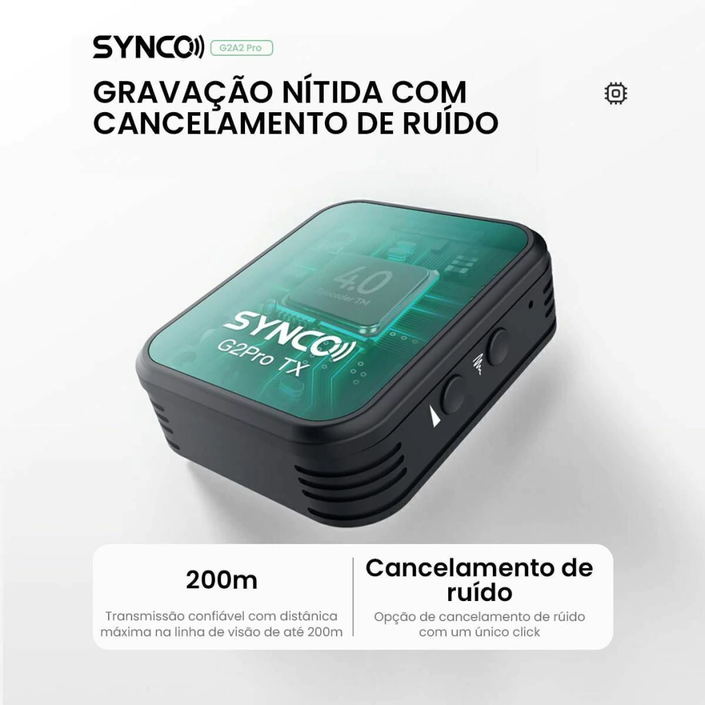 A transmissão criptografada do Syncoder 4.0 oferece transmissão confiável em linha de visão de até 656' e até 164' com obstruções limitadas. A redução de ruído integrada pode ser alternada em cada transmissor com o clique de um botão para reduzir a interferência de sons como vento, tráfego ou outros poluidores sonoros imprevistos.