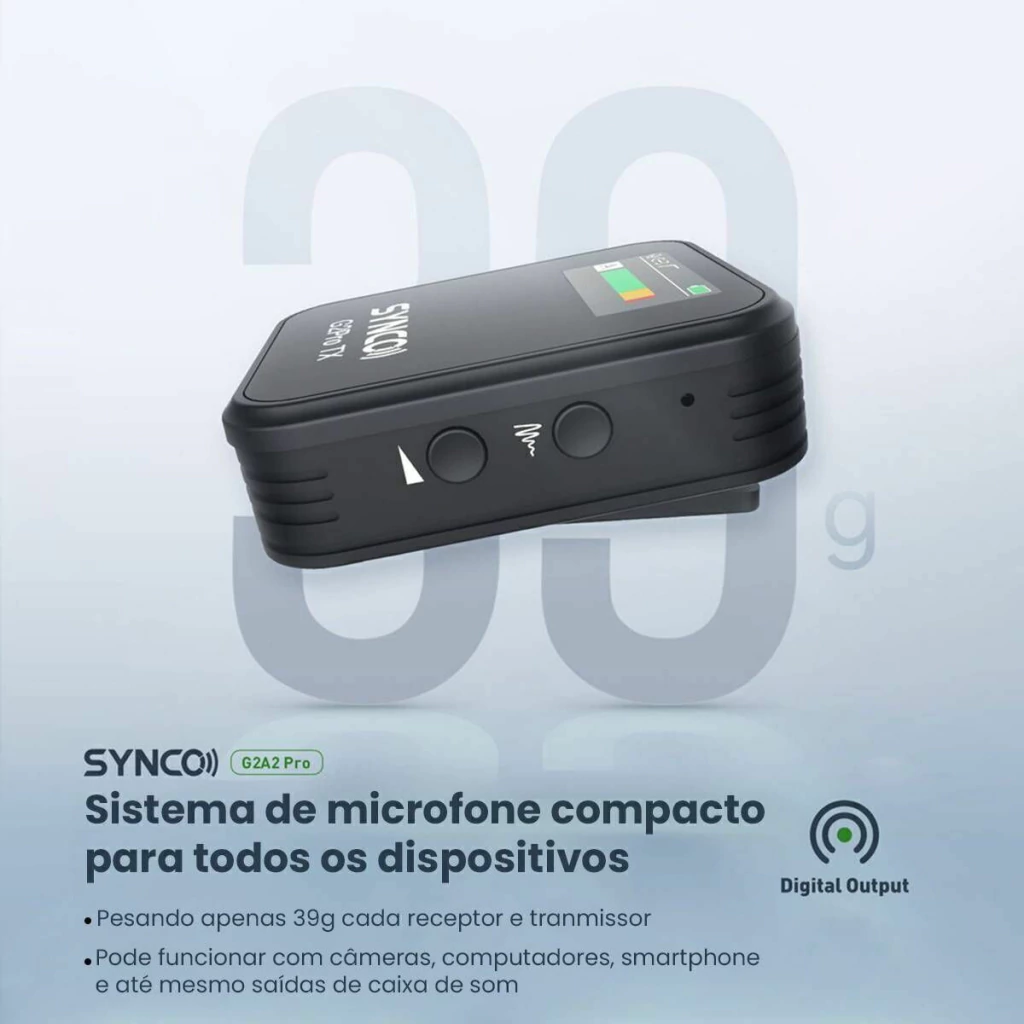 01 Sistema de microfone sem fio Synco WAir-G2-A2 PRO para 2 pessoas para câmeras e smartphones (2,4 GHz)