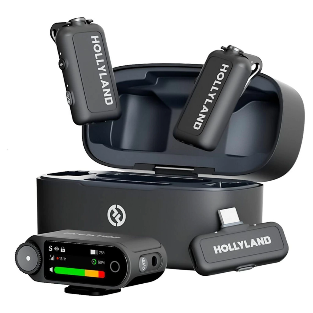 Sistema de microfone sem fio Hollyland LARK MAX 2 Combo para 2 pessoas, para câmeras e dispositivos móveis (cinza espacial, 2,4 GHz)