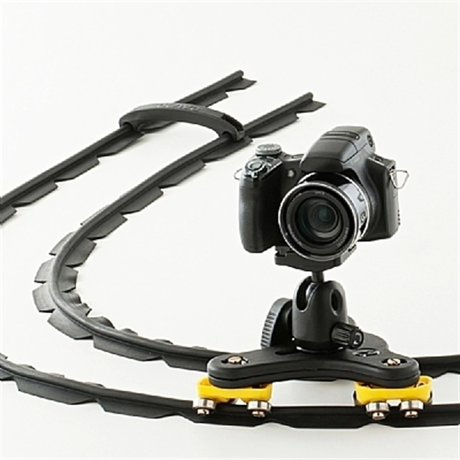 Slider de tres metros completo, o Photo Motion kit 3 Completo é uma otima combinação de design funcional com custo baixo e desejado. Prático de usar e transportar, o Twiddle é muito versátil, seus trilhos flexíveis permitem passeios retos, curvos e até percursos em pequenas subidas e descidas. Com um deslize extra suave e ruído zero, o Twiddle mantém a estabilidade de sua câmera e garante um desempenho profissional.