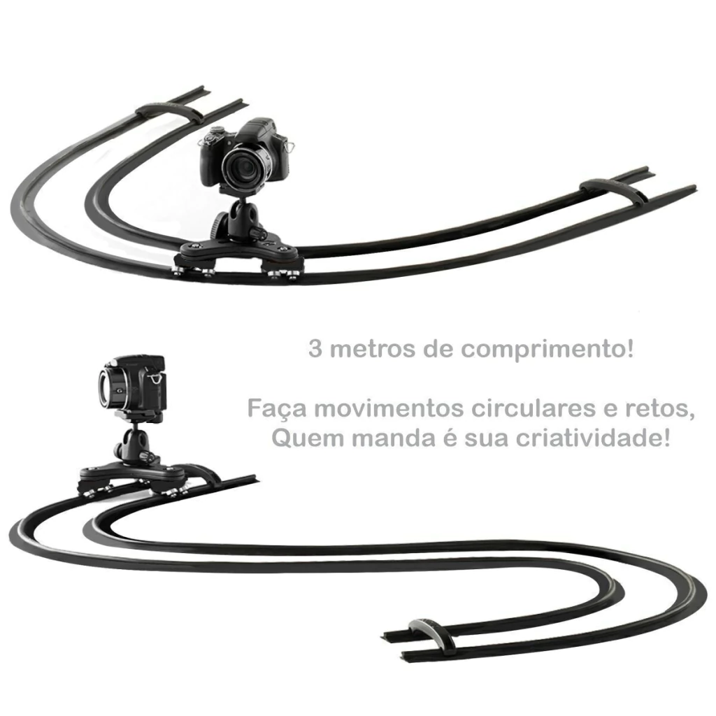 Slider flexível de borracha com trilhos de 3 metros e carrinho silencioso! Perfeito para filmagens com celular, câmeras, filmadoras, produto COMPLETO.