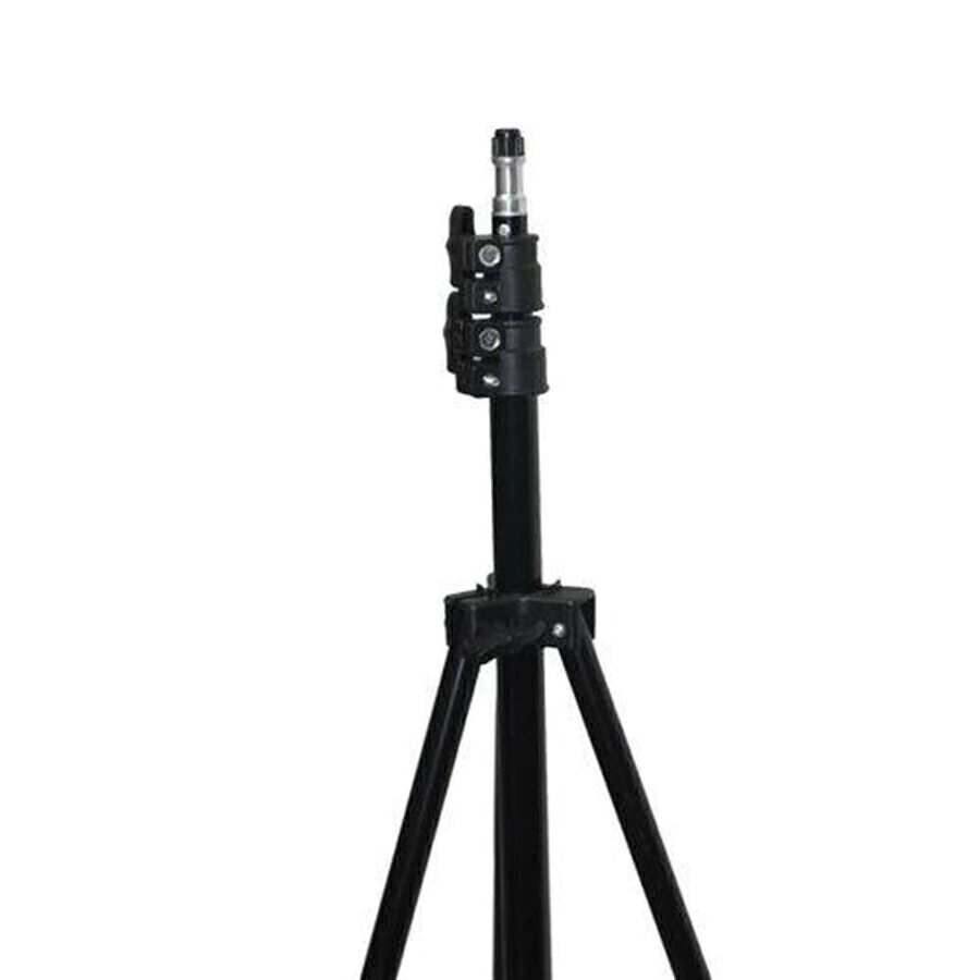 Tem dois apoios com altura máxima de 2 metros e mínima de 72 cm; travas de rosca e rosca 1/4". Suporta até 4 kg.