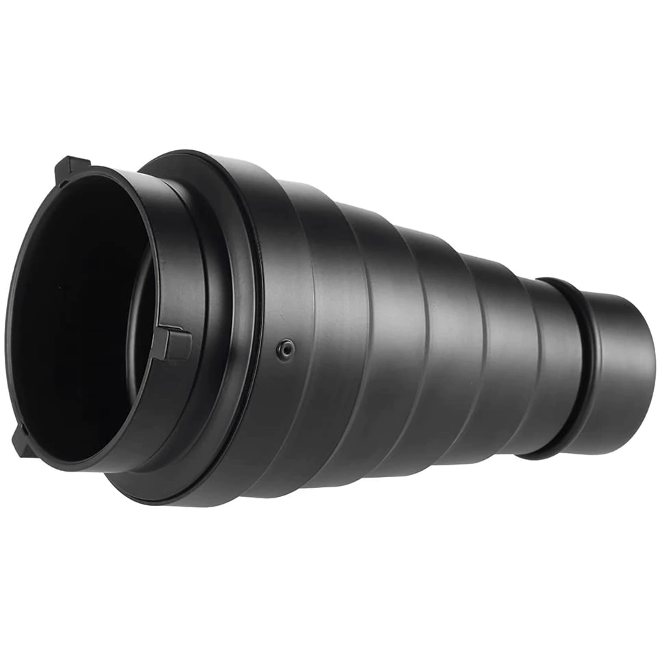 Este Snoot em formato cônico para flash com encaixe bowens, funciona como um direcionador de luz, iluminando o ponto desejado.