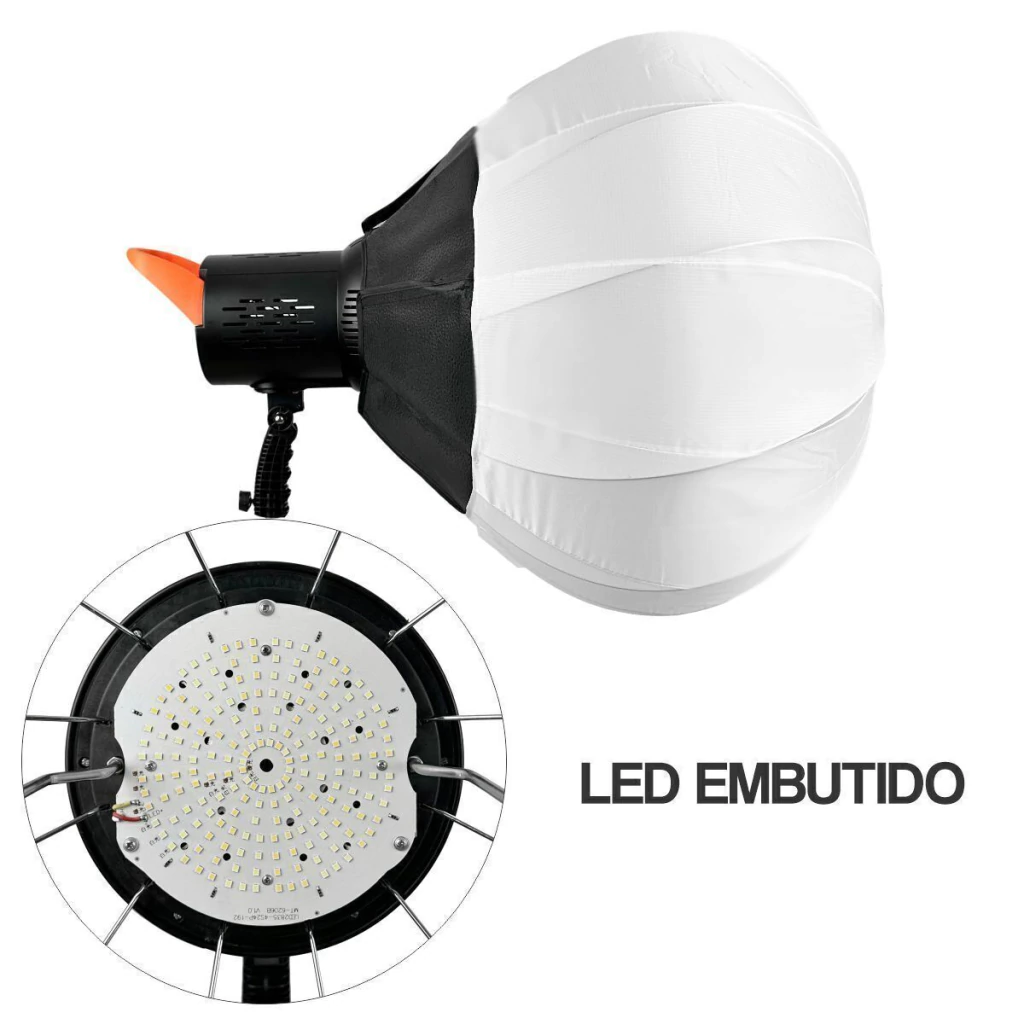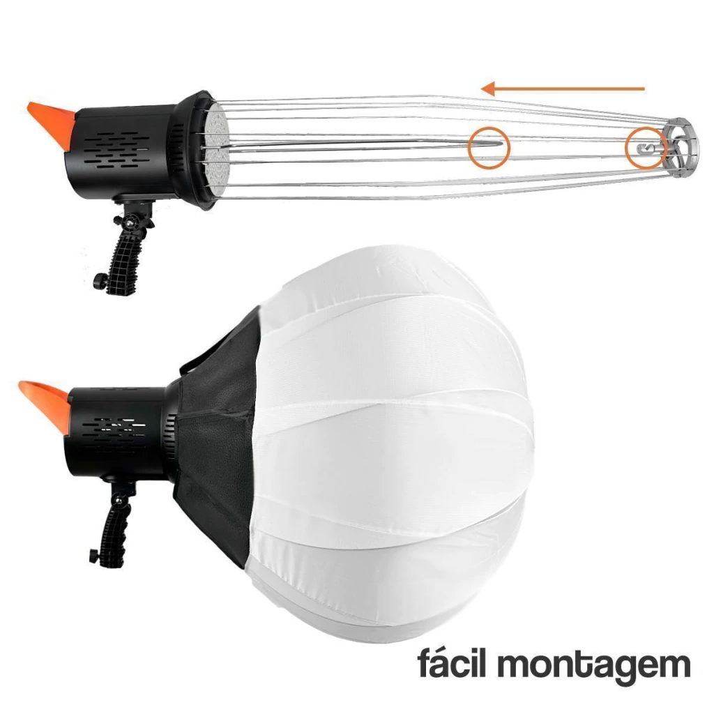Softbox Lanterna Globo Chines Redondo Easy 65cm com Lâmpada LED 80W Bicolor Bivolt e dimmerizável + Controle Remoto + Tripé.