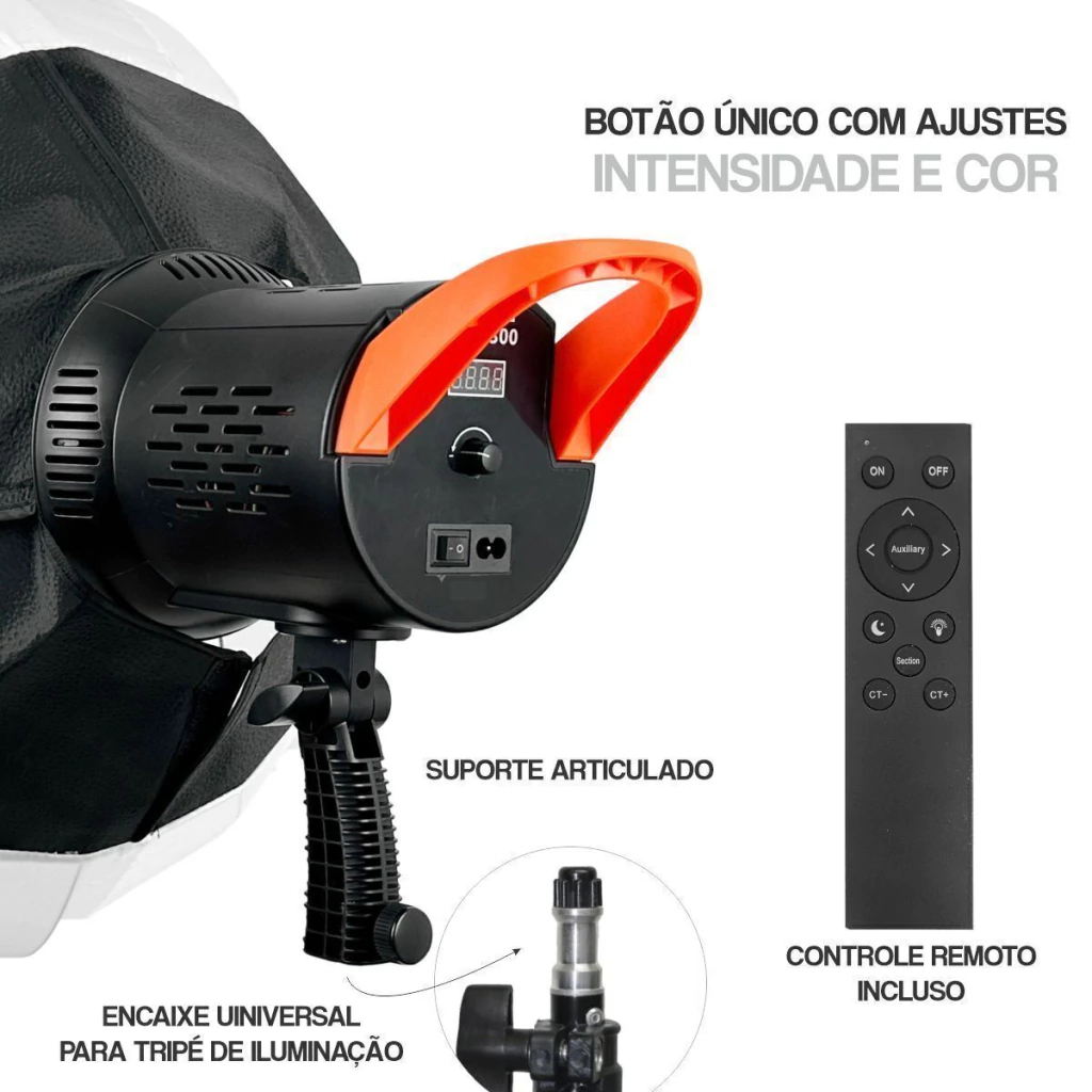 01 Softbox Lanterna Easy 65cm com led bicolor 80W;