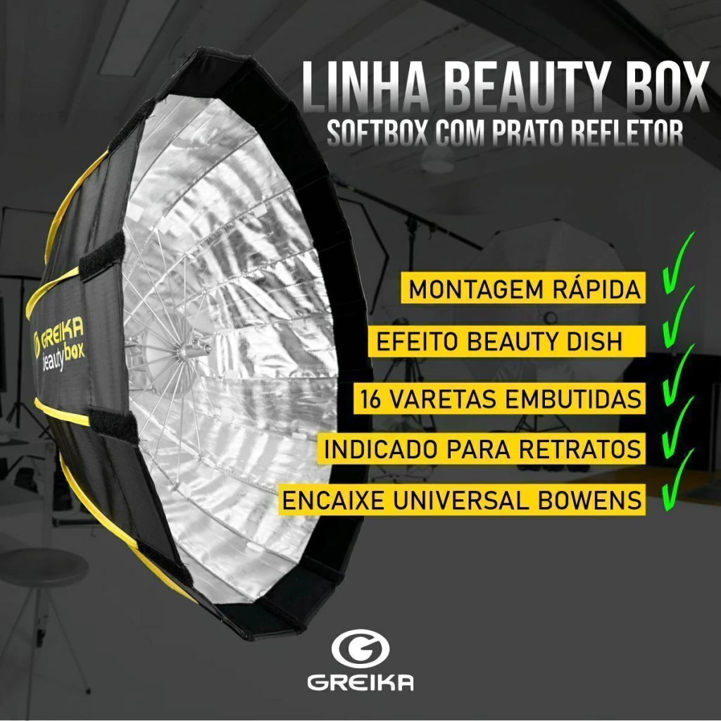 01 Softbox BEAUTY BOX Greika 85cm encaixe bowens;