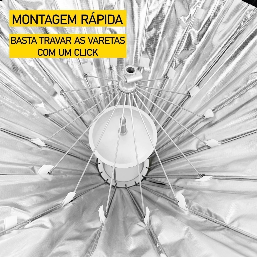 O grande diferencial desse softbox BEAUTY BOX é sua montagem simples, igual guarda-chuva e sua preto refletor que entrega um efeito melhor em fotos de retratos.