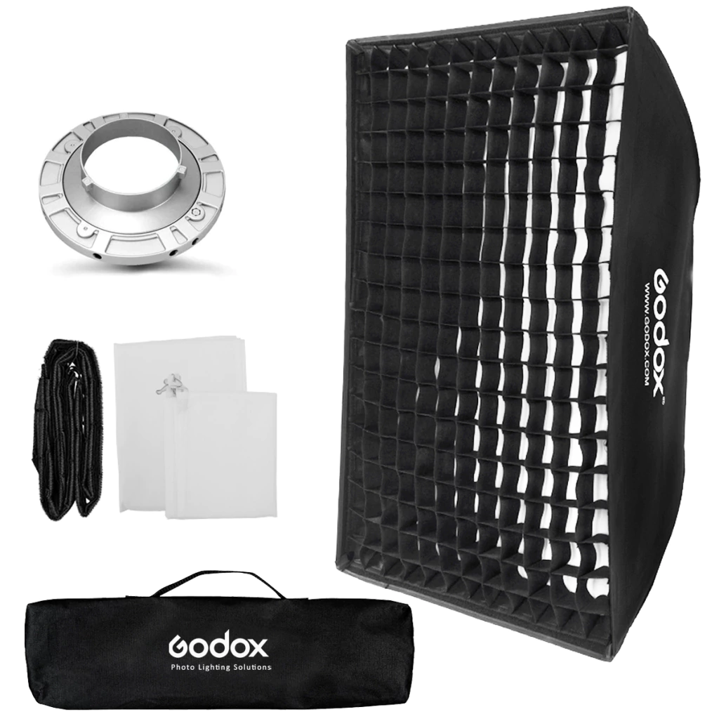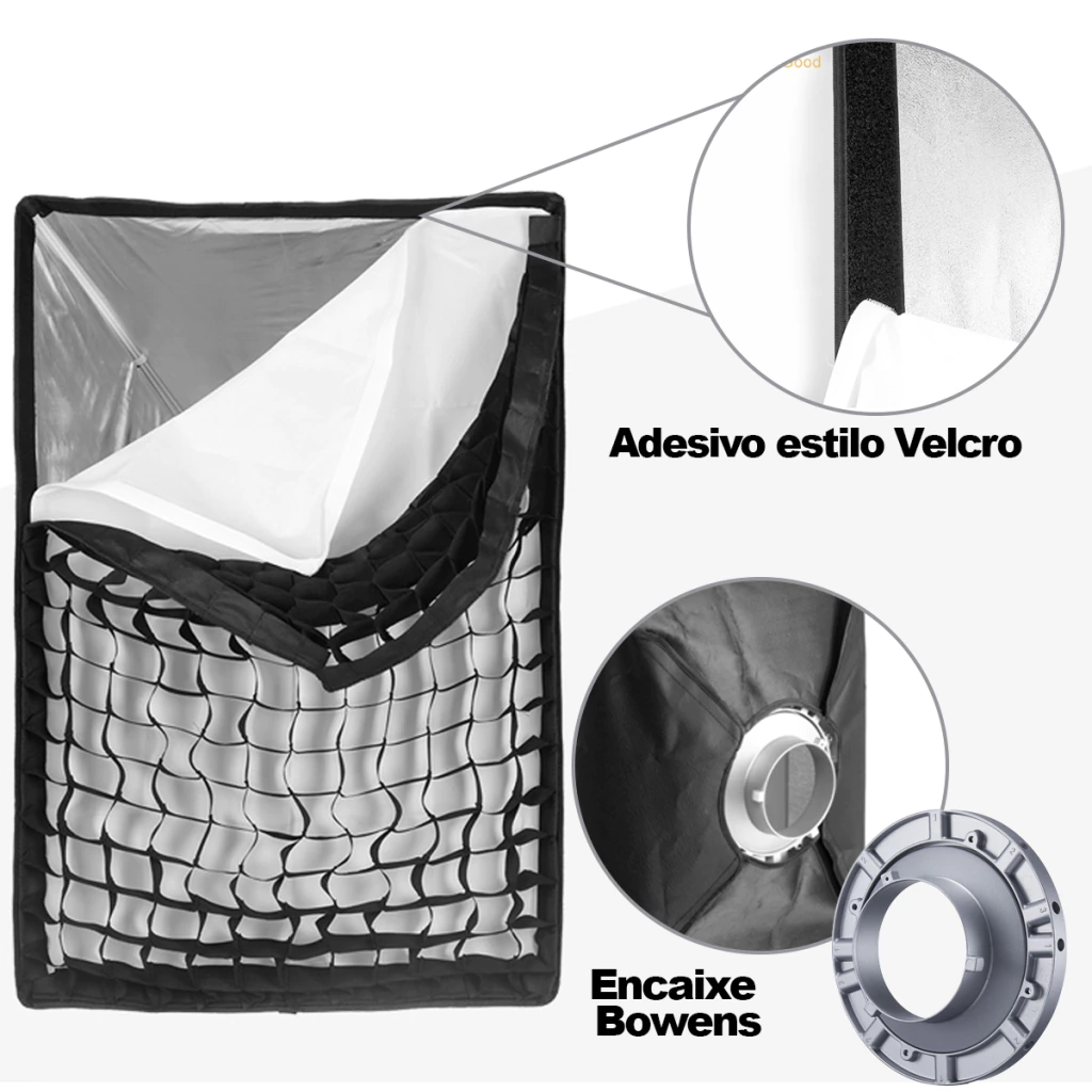 Softbox 60x90 cm Godox com Grid e telas difusoras, desenvolvido para estúdios fotográficos para uso com flashes/tochas.